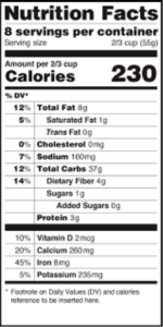 Serving Size: This is the amount of food that this nutrition label describes. So, all of the nutrition information about this cereal describes what is in ⅔ of a cup of cereal.